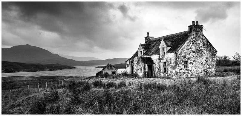 An abandoned croft house on the Isle of Lewis, scarred by the relentless weather, gradually surrendering to the inevitability of decay.